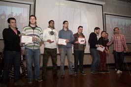 Segundo Premio (150 dólares): Proyecto: "Algoritmos de estimación del estado de la red de potencia para su uso con sincrofasores". Estudiantes: Emilio Font, Sebastián Isaurralde y Gonzalo Aristoy.