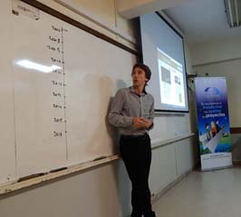 En un clima distendido, Juan Pecchiar (docente en FING e integrante del proyecto AntelSat) y Diego Bonilla (expositor de IdM2014), cerraron la instancia relatando su experiencia como expositores y contando el impacto que la muestra generó en sus proyectos.