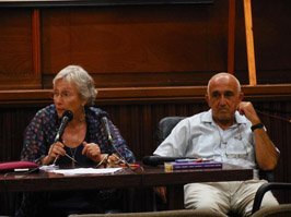 Pie de foto: María Simon y el rector Roberto Markarian ayer durante la Asamblea del Claustro.
