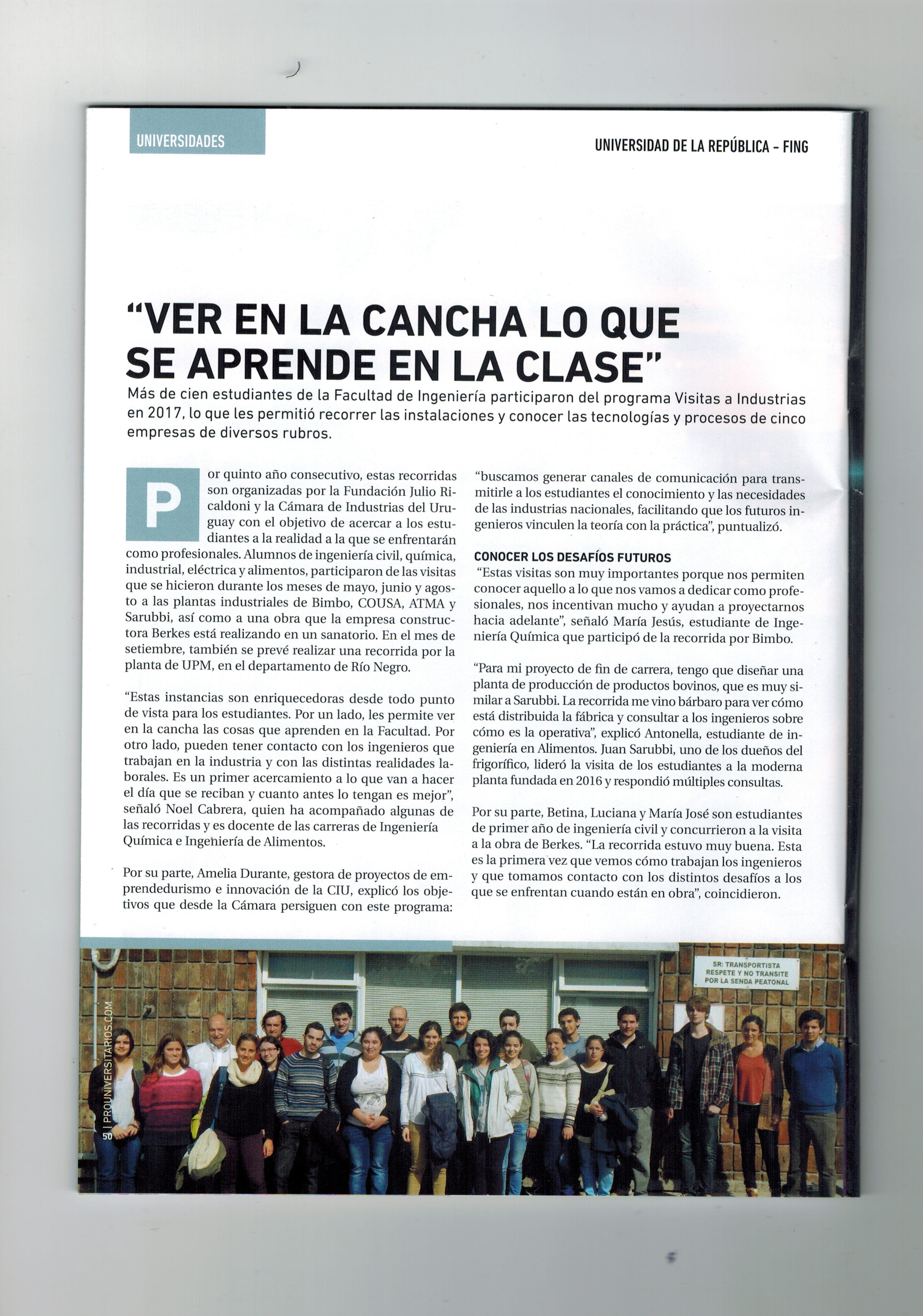 En 2017, más de 100 estudiantes de Facultad de Ingeniería participaron del programa Visitas a Industrias, organizado entre la CIU y la FJR.